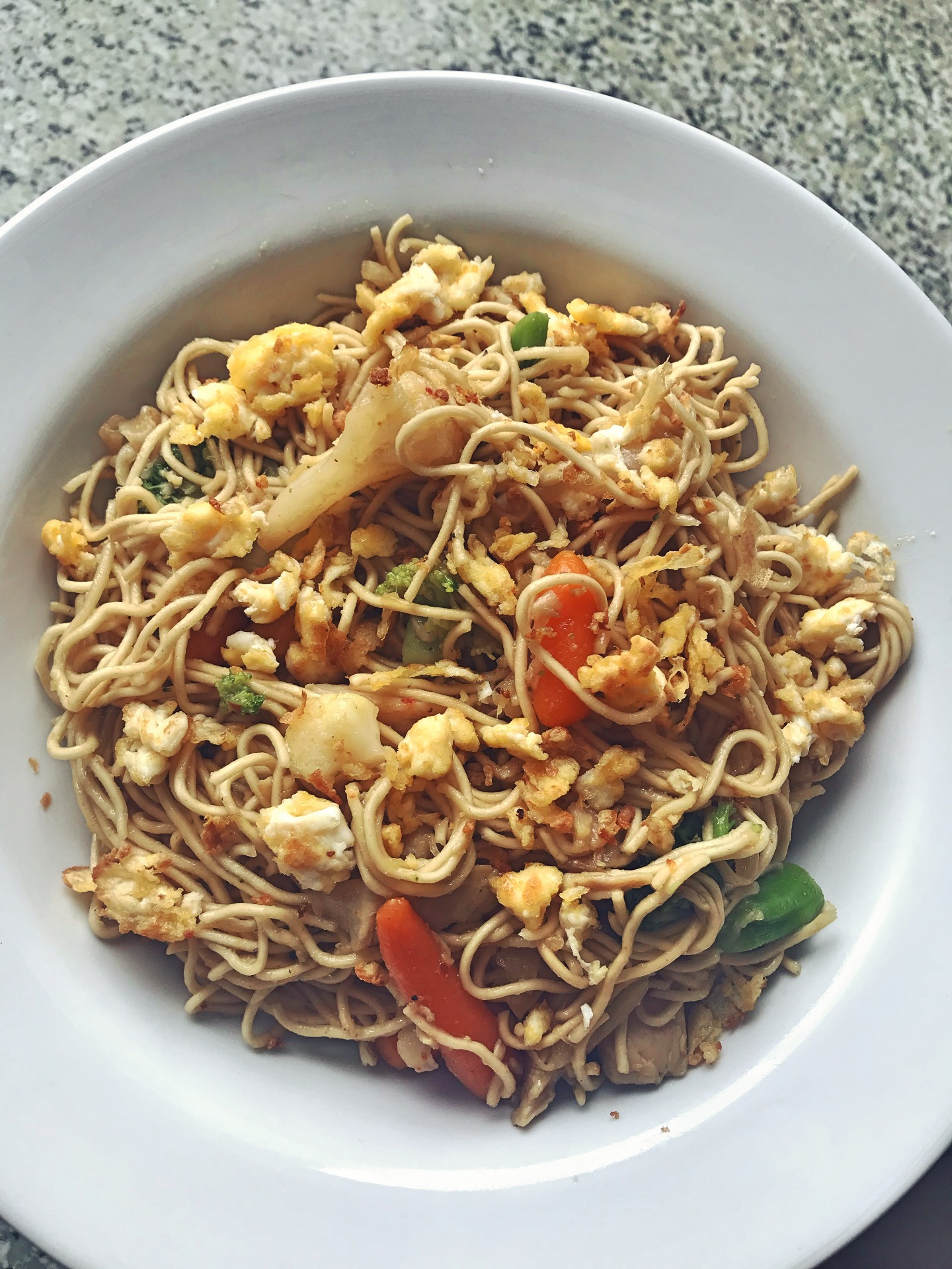 1 balík čínskych rezancov2 kuracie prsiamrazená zelenina - ľubovoľná (ja som použila brokolicu, baby mrkvu, karfiol)1 väčšia cibuľa3 strúčiky cesnaku1 zázvor3 PL sójovej omáčky3 PL ústricovej omáčky2 PL lyžice olejasoľčierne koreniesušené chilli2 vajíčka1 PL medu